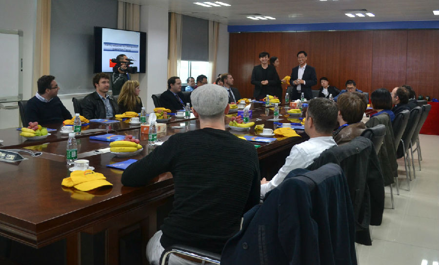 本次參觀交流先以會議形式展開,由海外市場部莫渙文在公司會議室為來訪客商介紹順威的發展歷程、經營管理等基本概況。會議期間,法國客商對我司目前的人力、生產等方面現場提問,王總一一給予詳細解答。